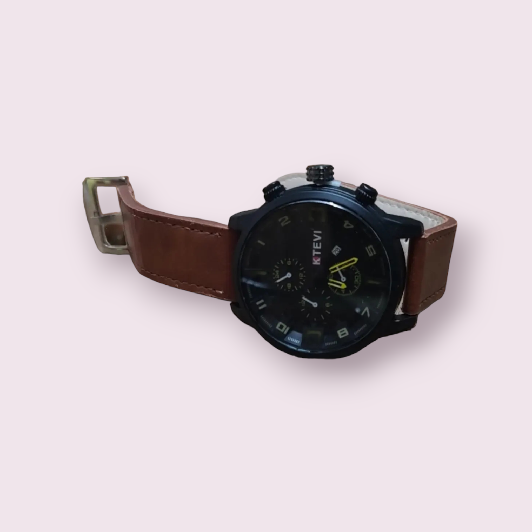 Relógio masculino, com pulseira de couro e mostrador analógico